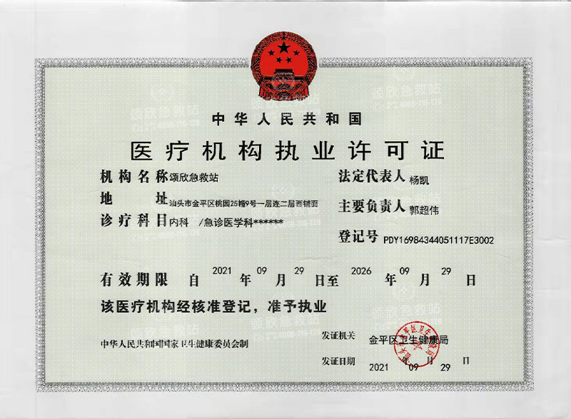 汕頭市頌欣急救轉運站位于汕頭市金平區桃園25幢9號,占地500平。汕頭市衛生健康局批準的專業醫療轉運機構。設有行政辦公區:總經理室、會議室、接待室。功能辦公區:急救科、調度室、車管科、醫護辦公室。